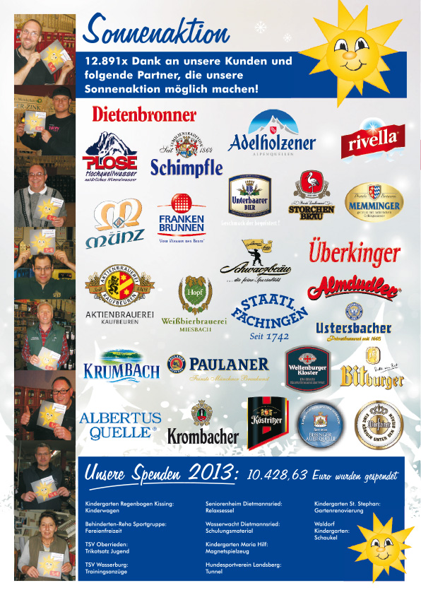 Wir unterstützten u.a. den Kindergarten Kissing, das Seniorenheim Dietmannsried, den TSV Oberrieden...und viele mehr
